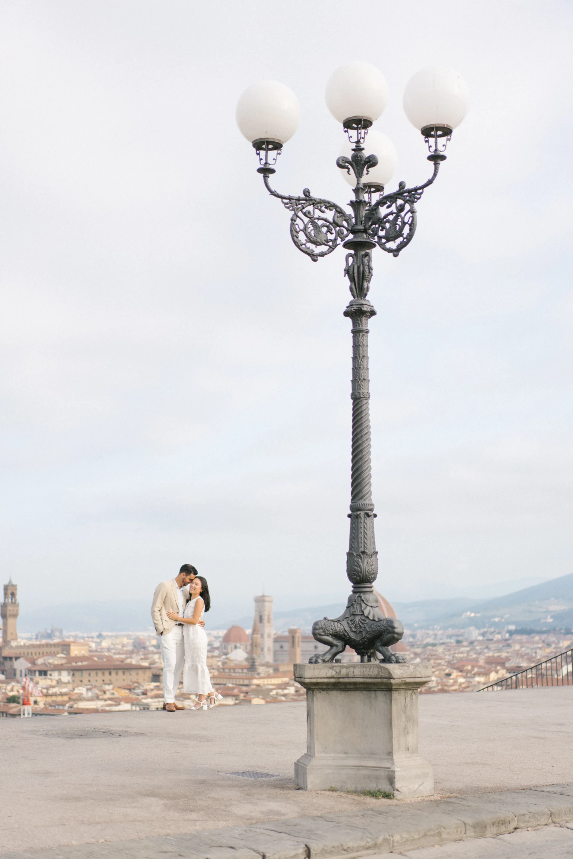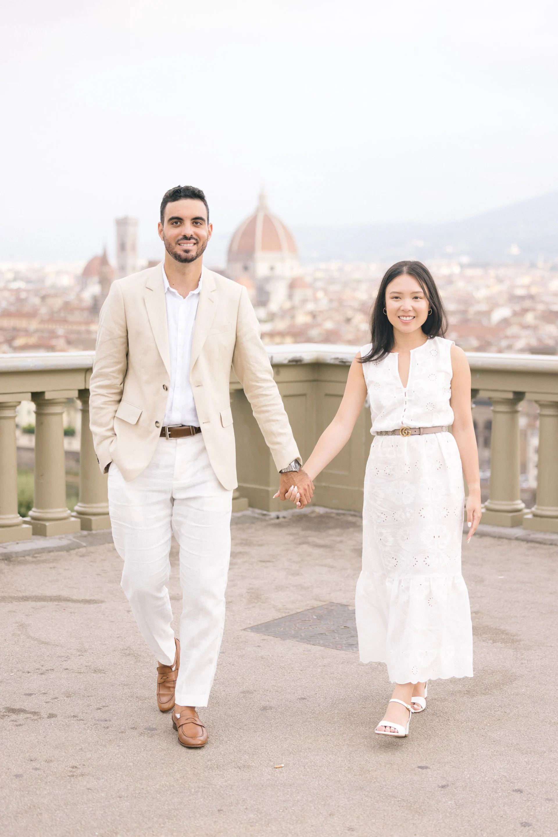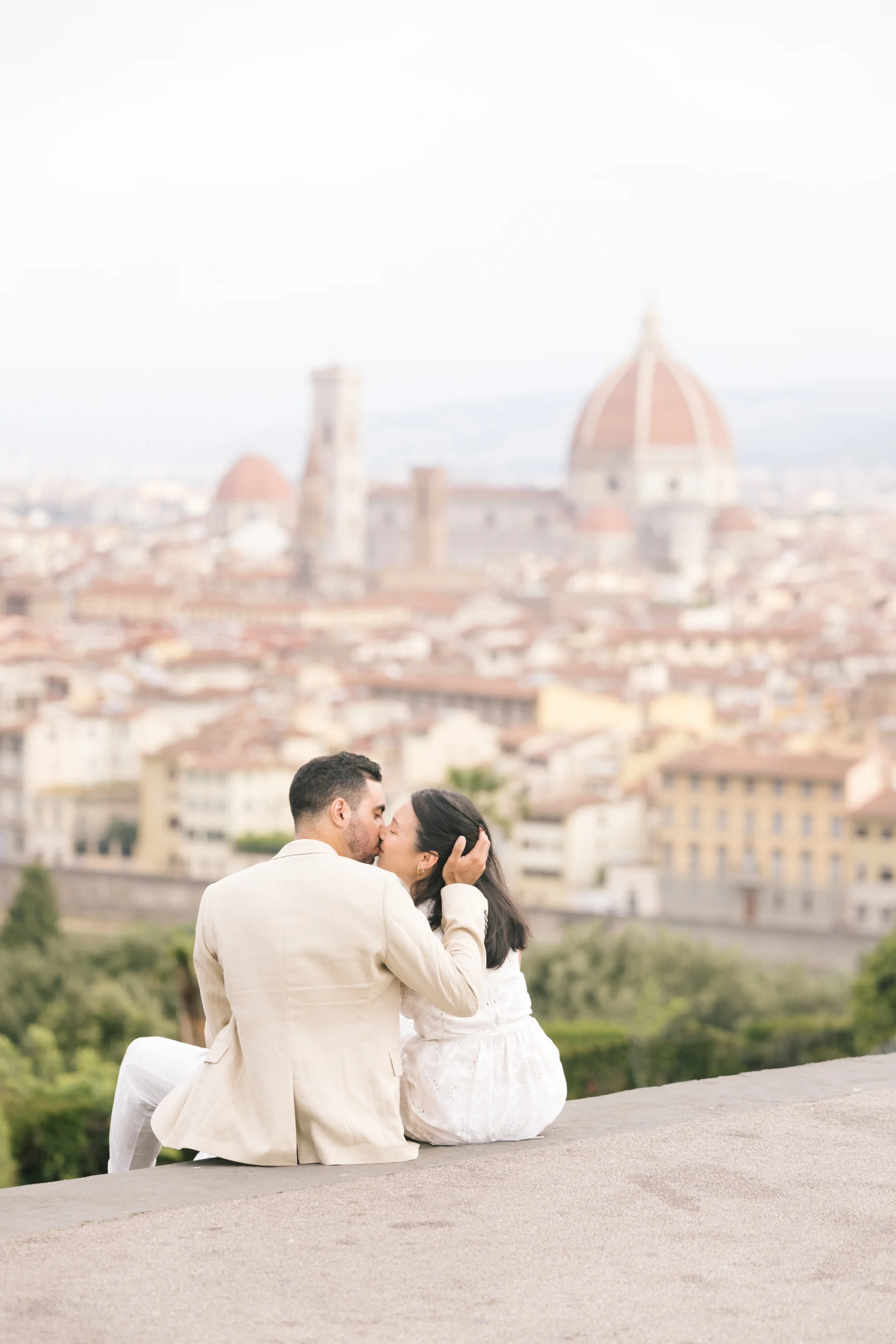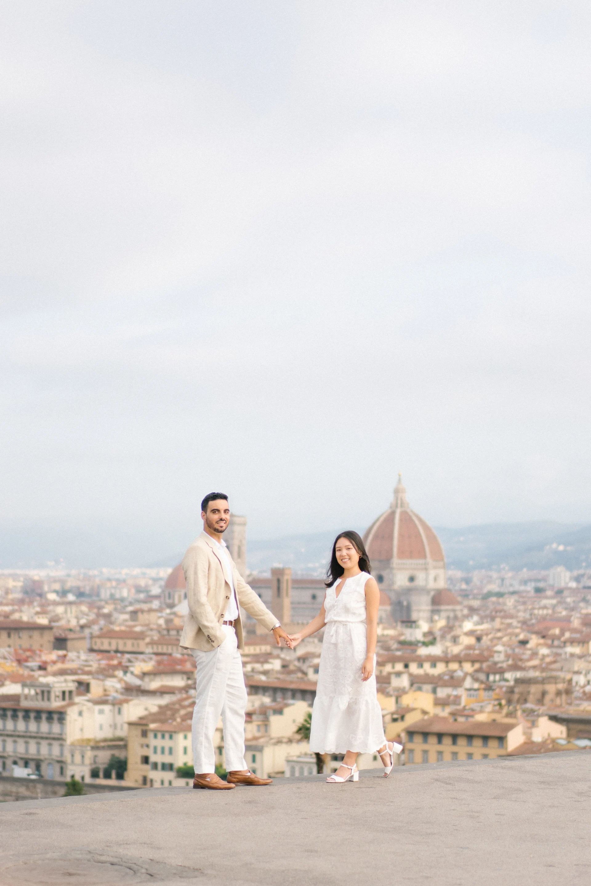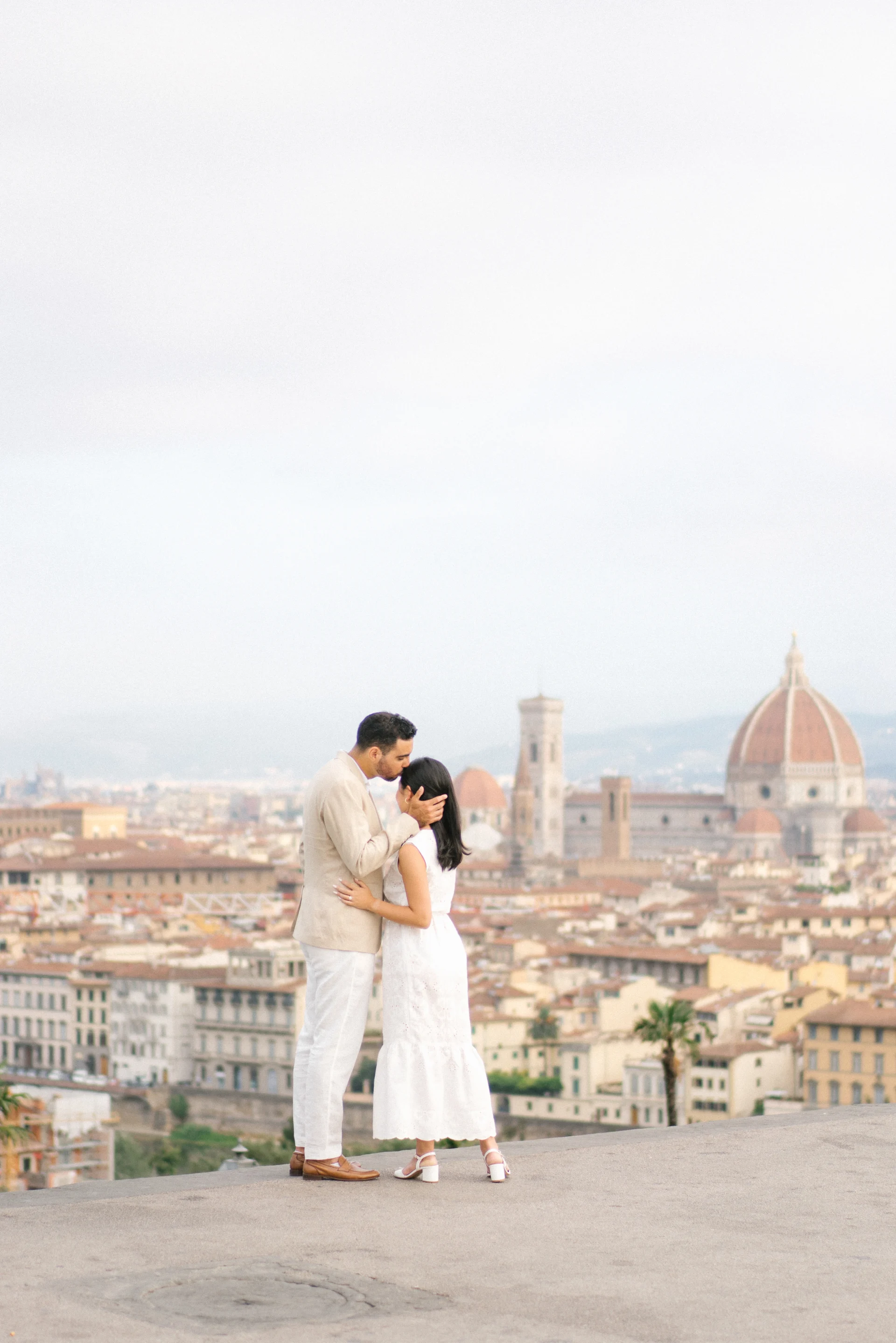 A few days later, we met in Florence, where they wandered through the historic city in effortless neutral tones, sharing quiet moments and laughter against the breathtaking backdrop of the Duomo. From romantic embraces at Piazzale Michelangelo to dreamy walks along Florence’s sun-drenched streets, this session was a perfect reflection of their love and the magic of Italy. If you’re planning a destination wedding or engagement in Italy, let this be your inspiration!