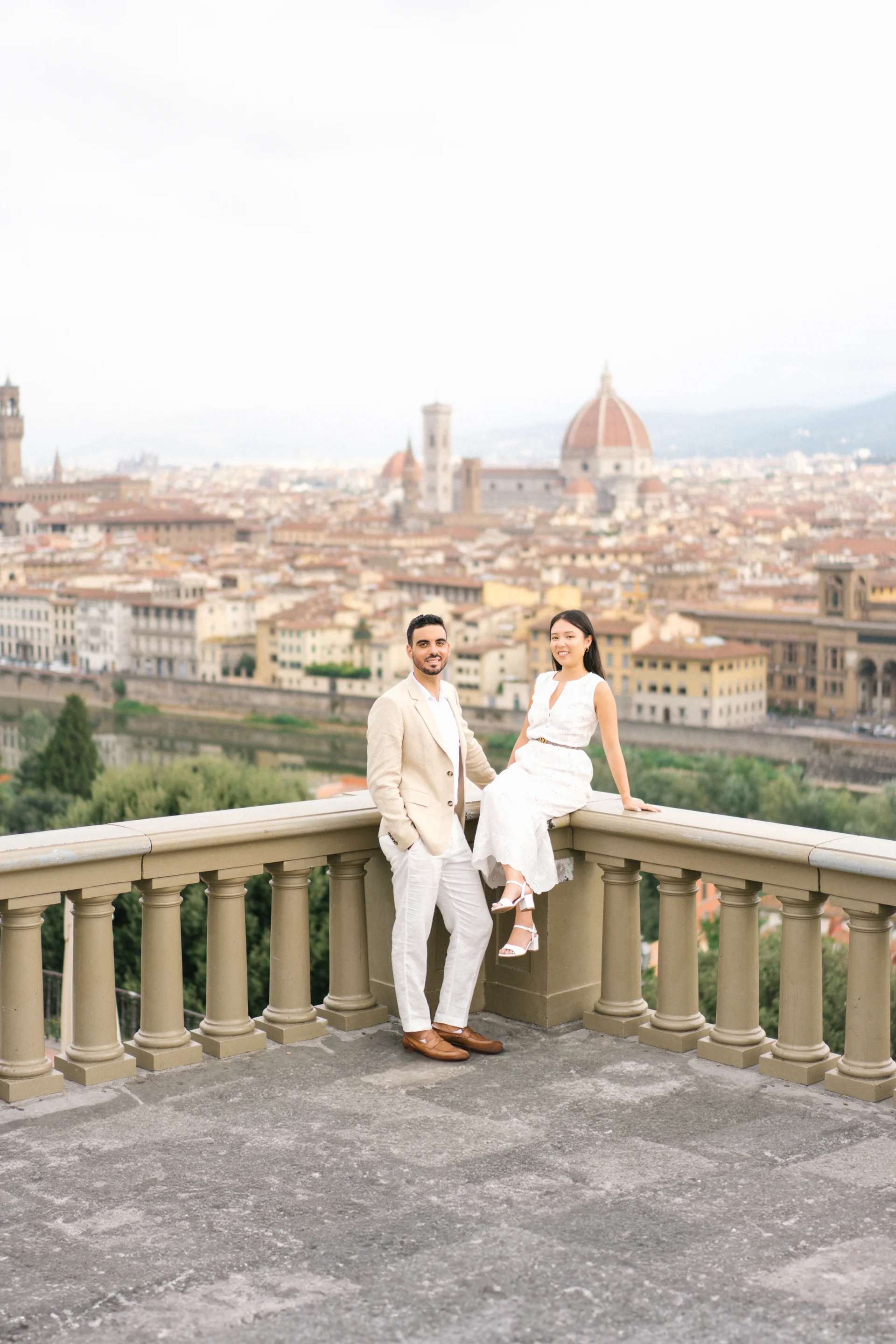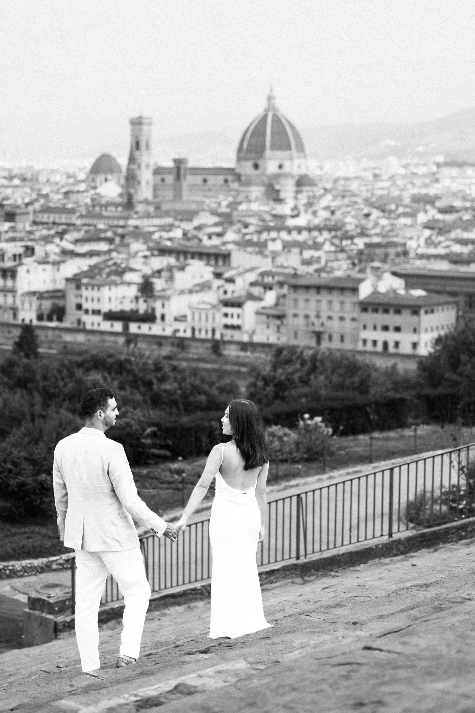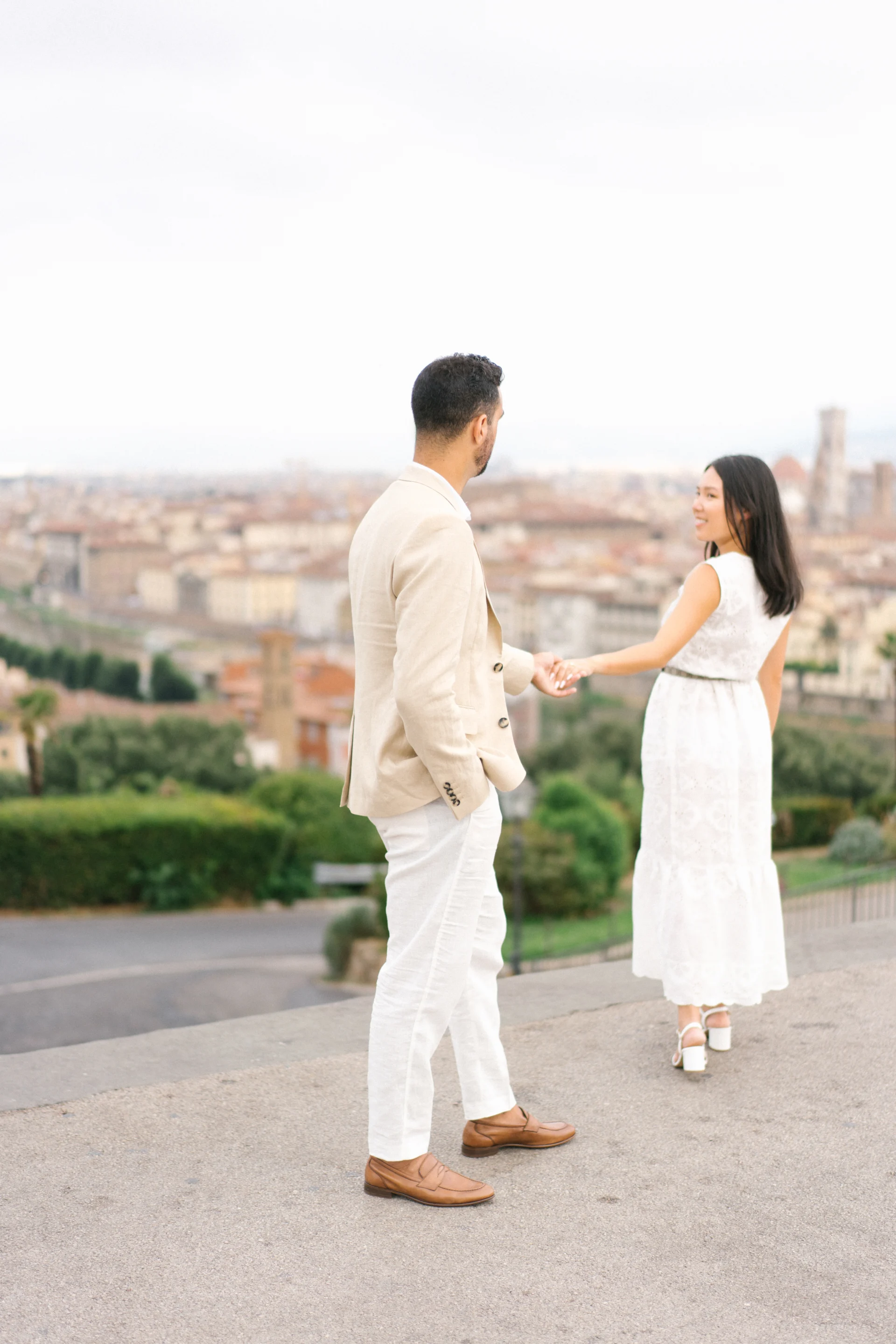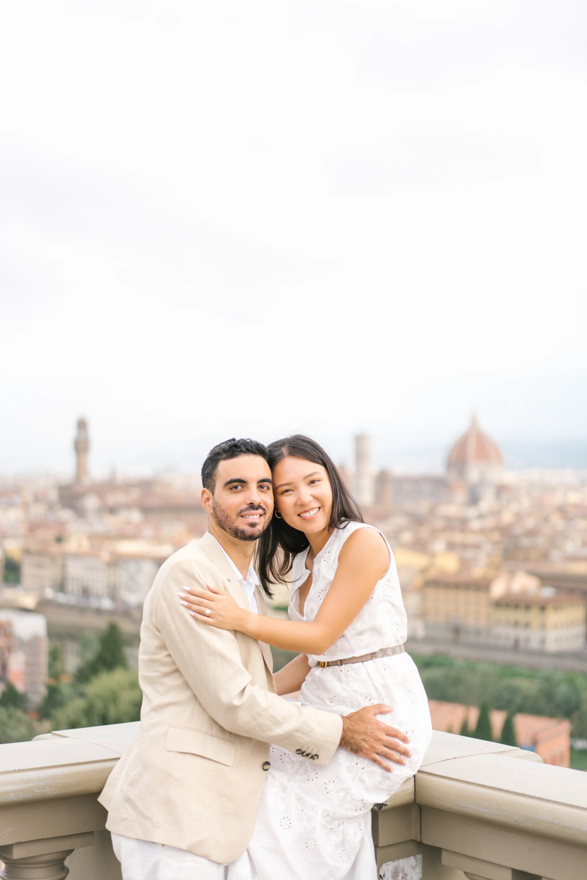 A few days later, we met in Florence, where they wandered through the historic city in effortless neutral tones, sharing quiet moments and laughter against the breathtaking backdrop of the Duomo. From romantic embraces at Piazzale Michelangelo to dreamy walks along Florence’s sun-drenched streets, this session was a perfect reflection of their love and the magic of Italy. If you’re planning a destination wedding or engagement in Italy, let this be your inspiration!