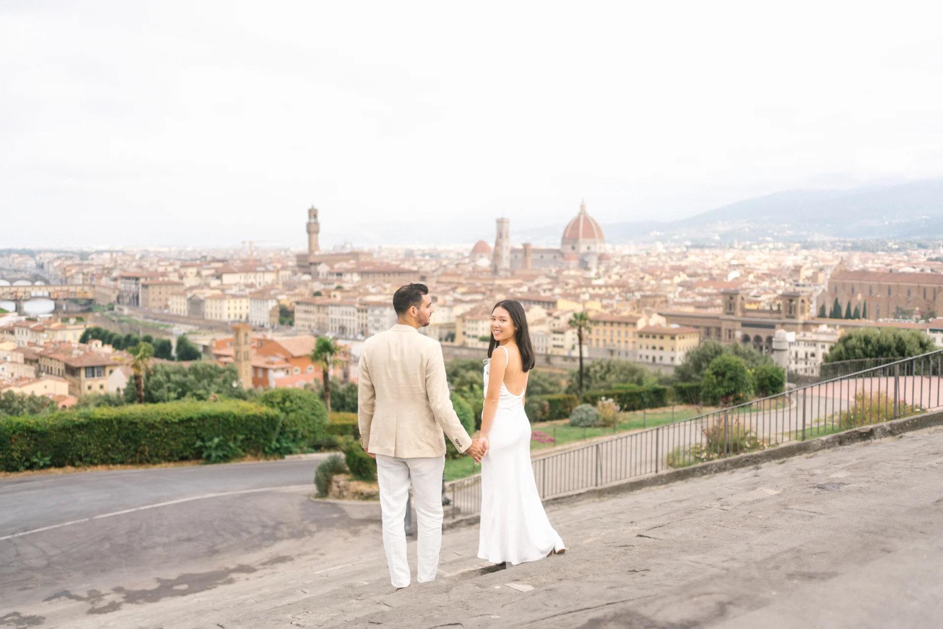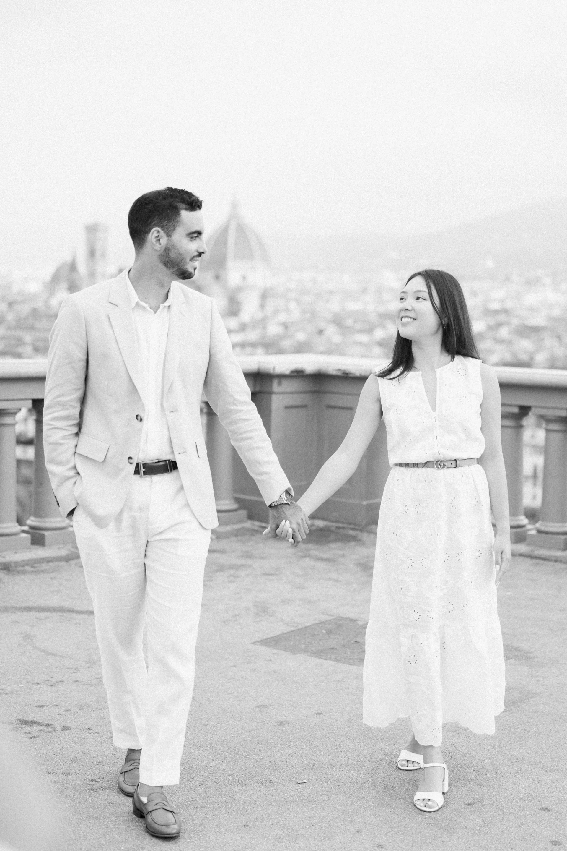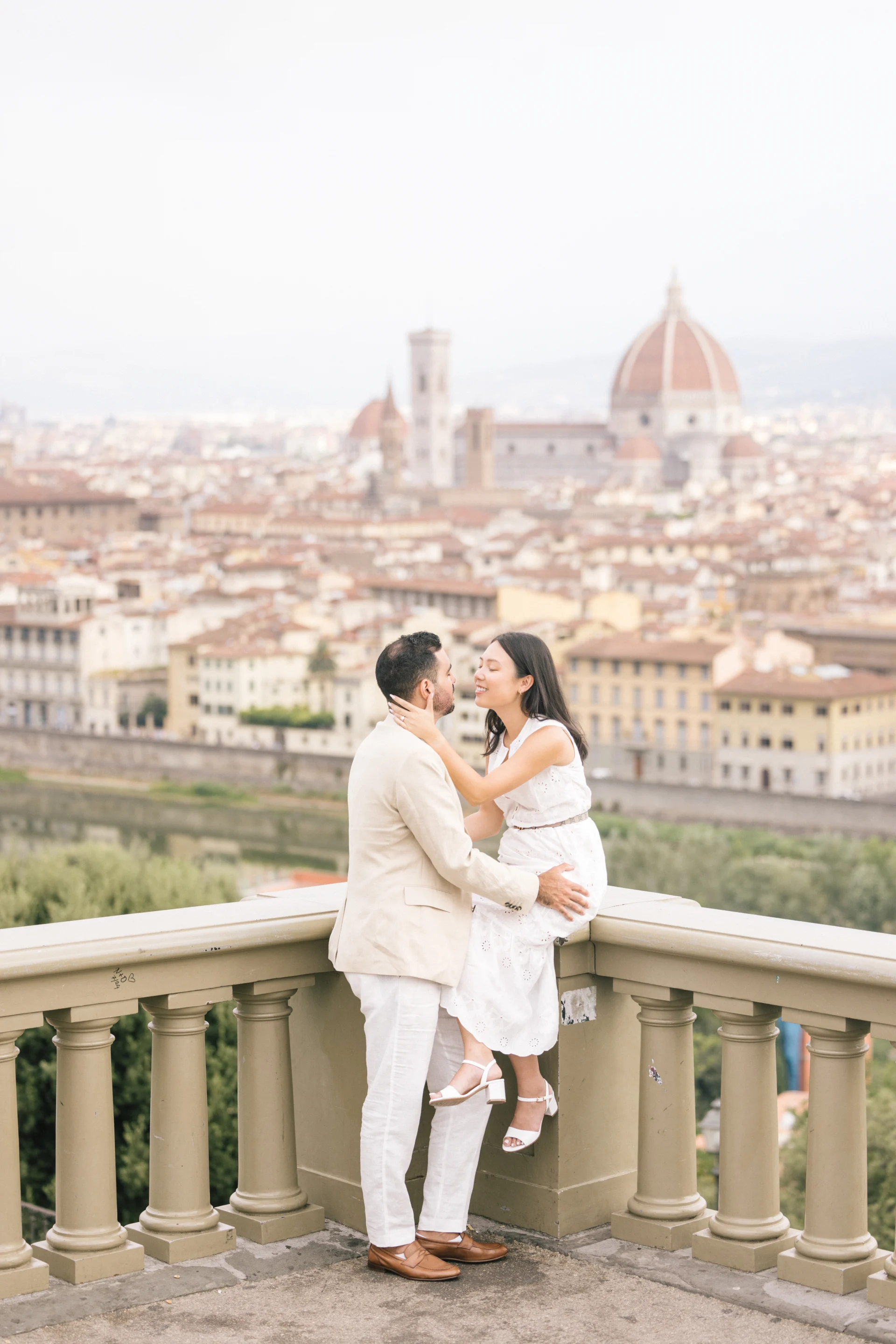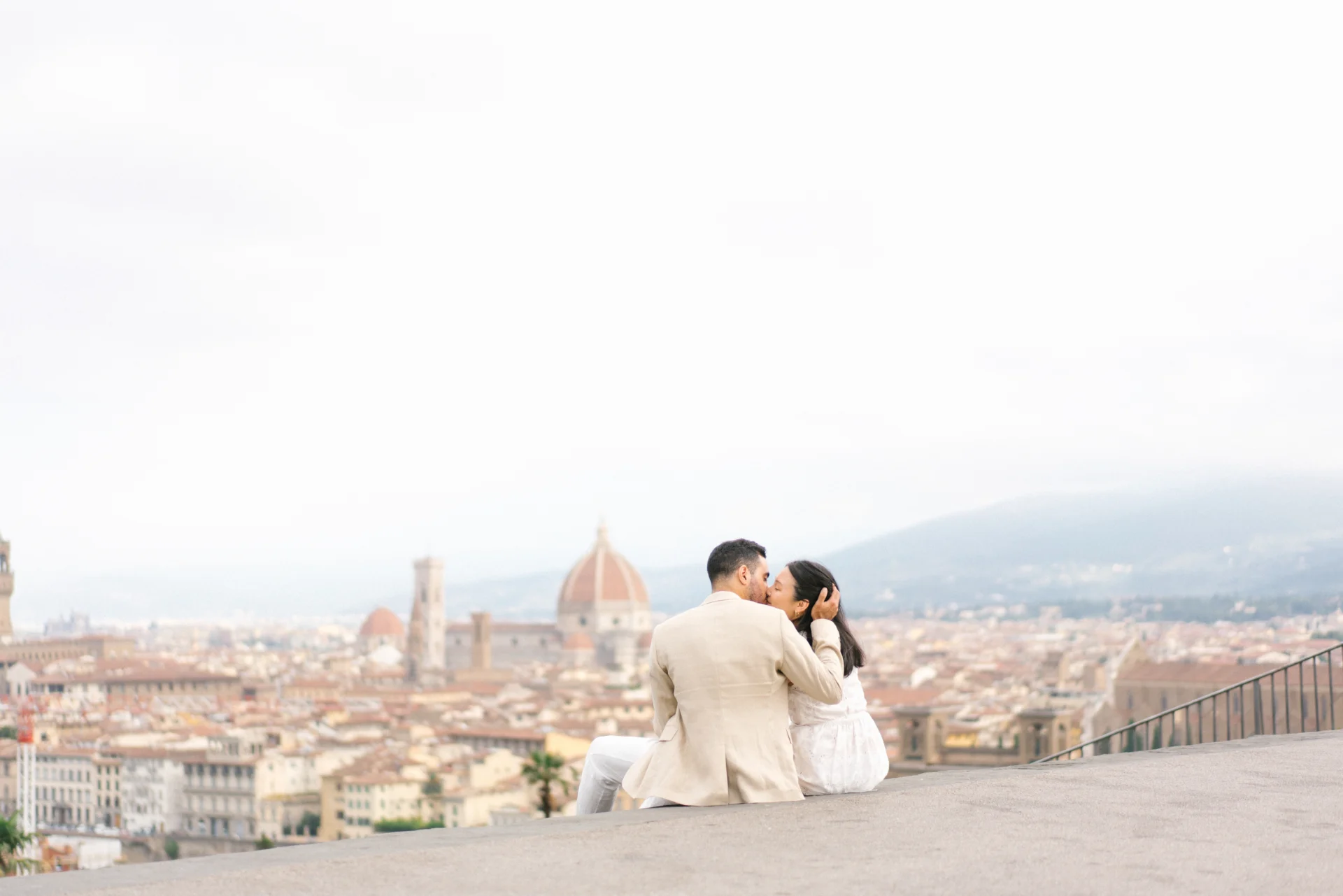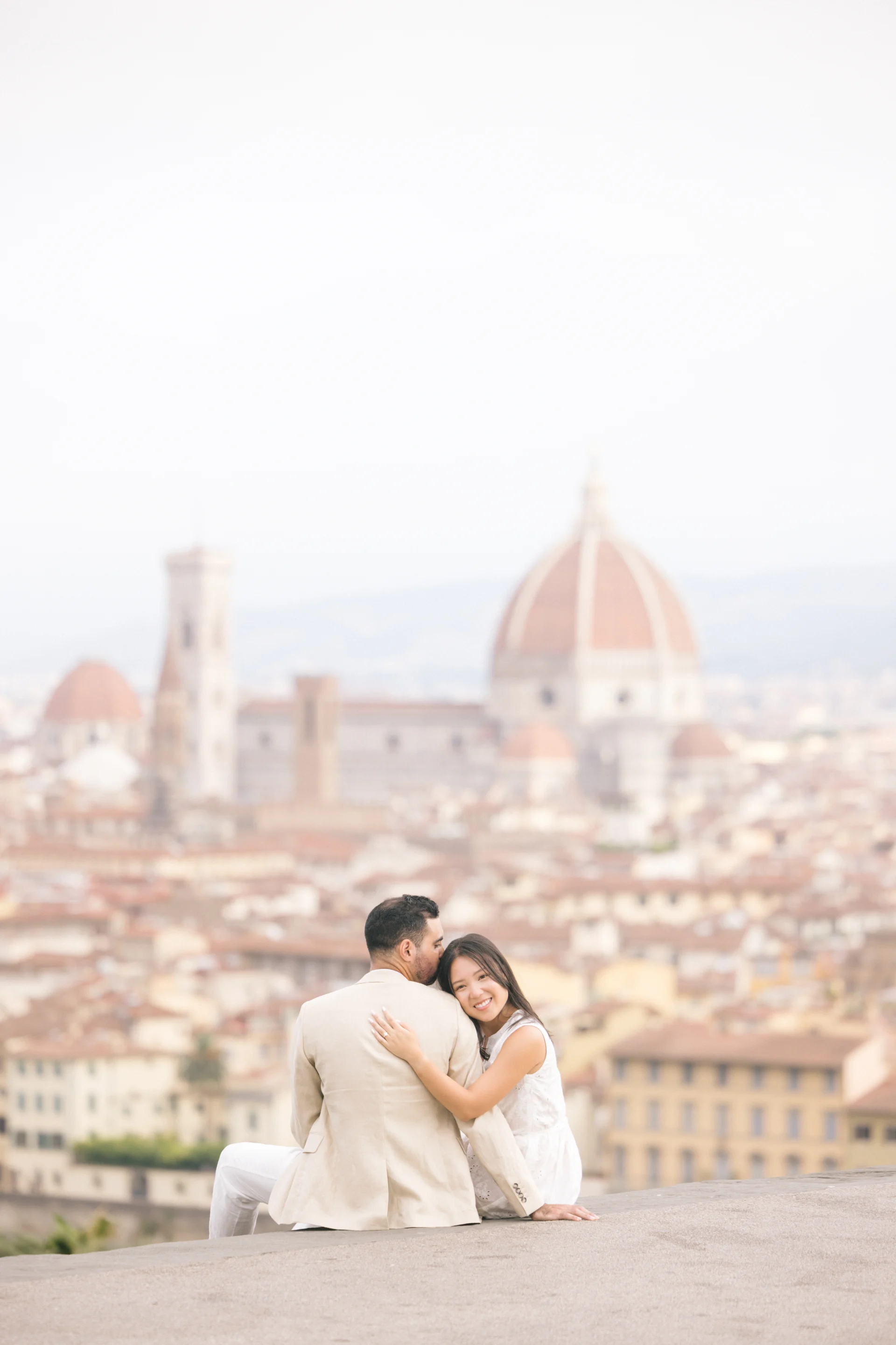 A few days later, we met in Florence, where they wandered through the historic city in effortless neutral tones, sharing quiet moments and laughter against the breathtaking backdrop of the Duomo. From romantic embraces at Piazzale Michelangelo to dreamy walks along Florence’s sun-drenched streets, this session was a perfect reflection of their love and the magic of Italy. If you’re planning a destination wedding or engagement in Italy, let this be your inspiration!