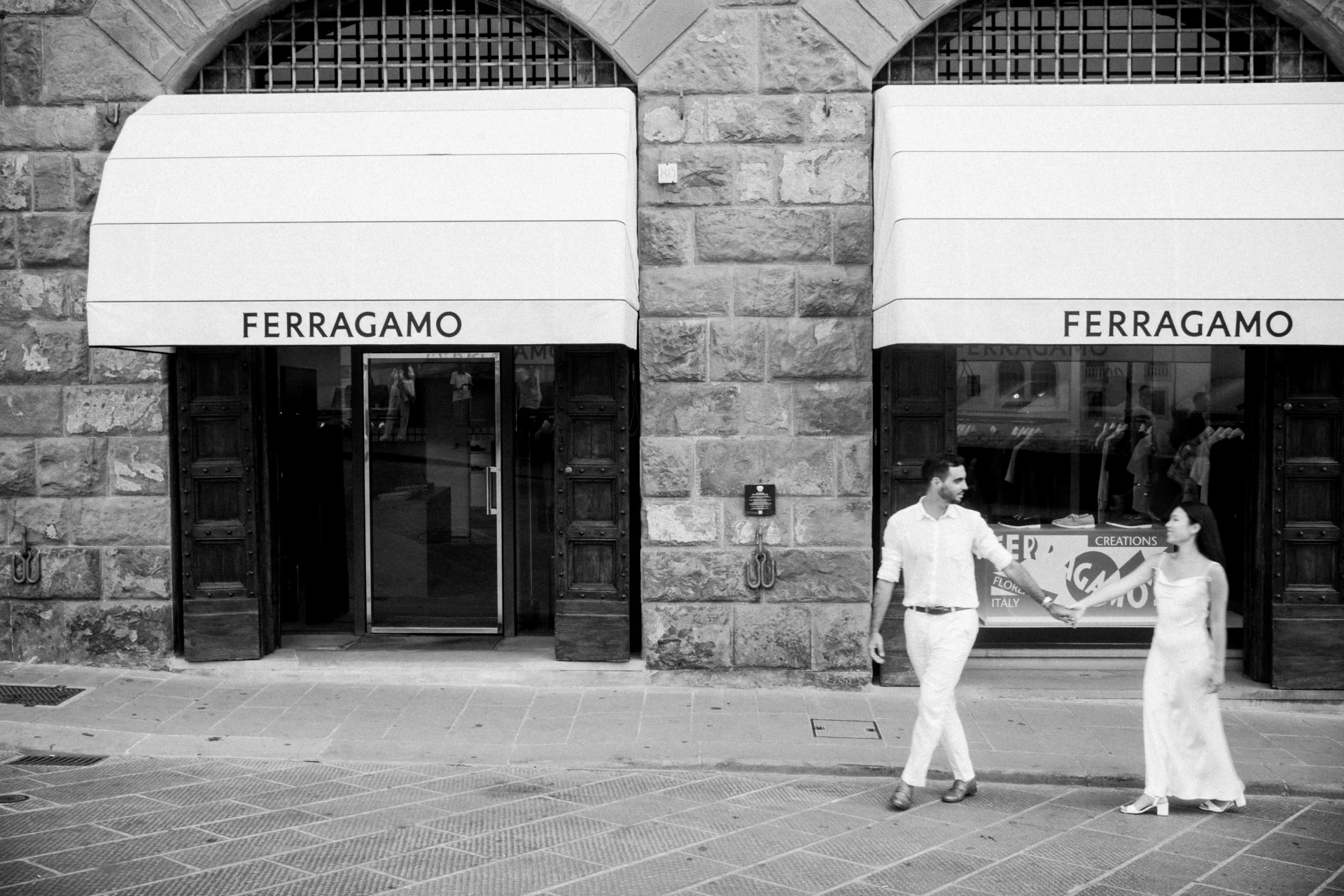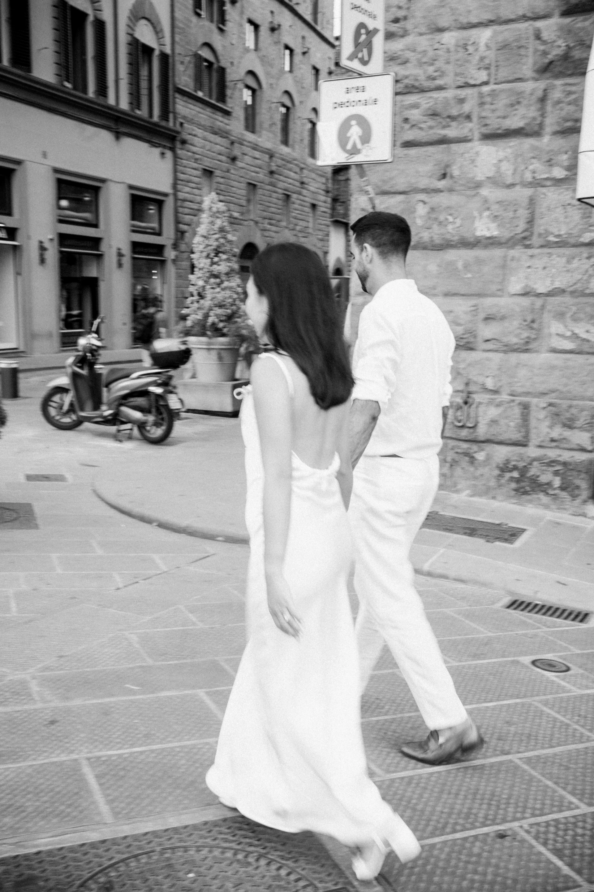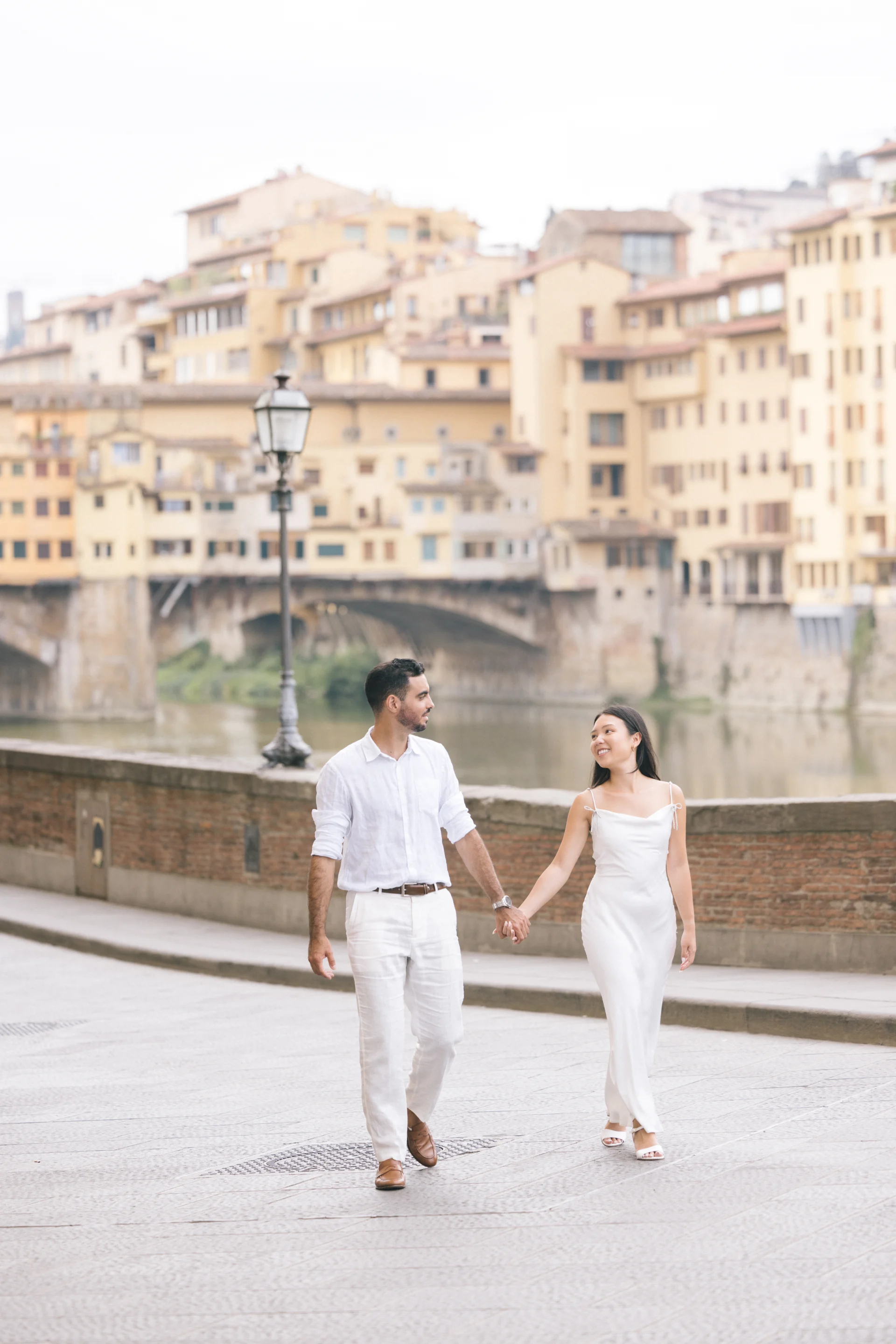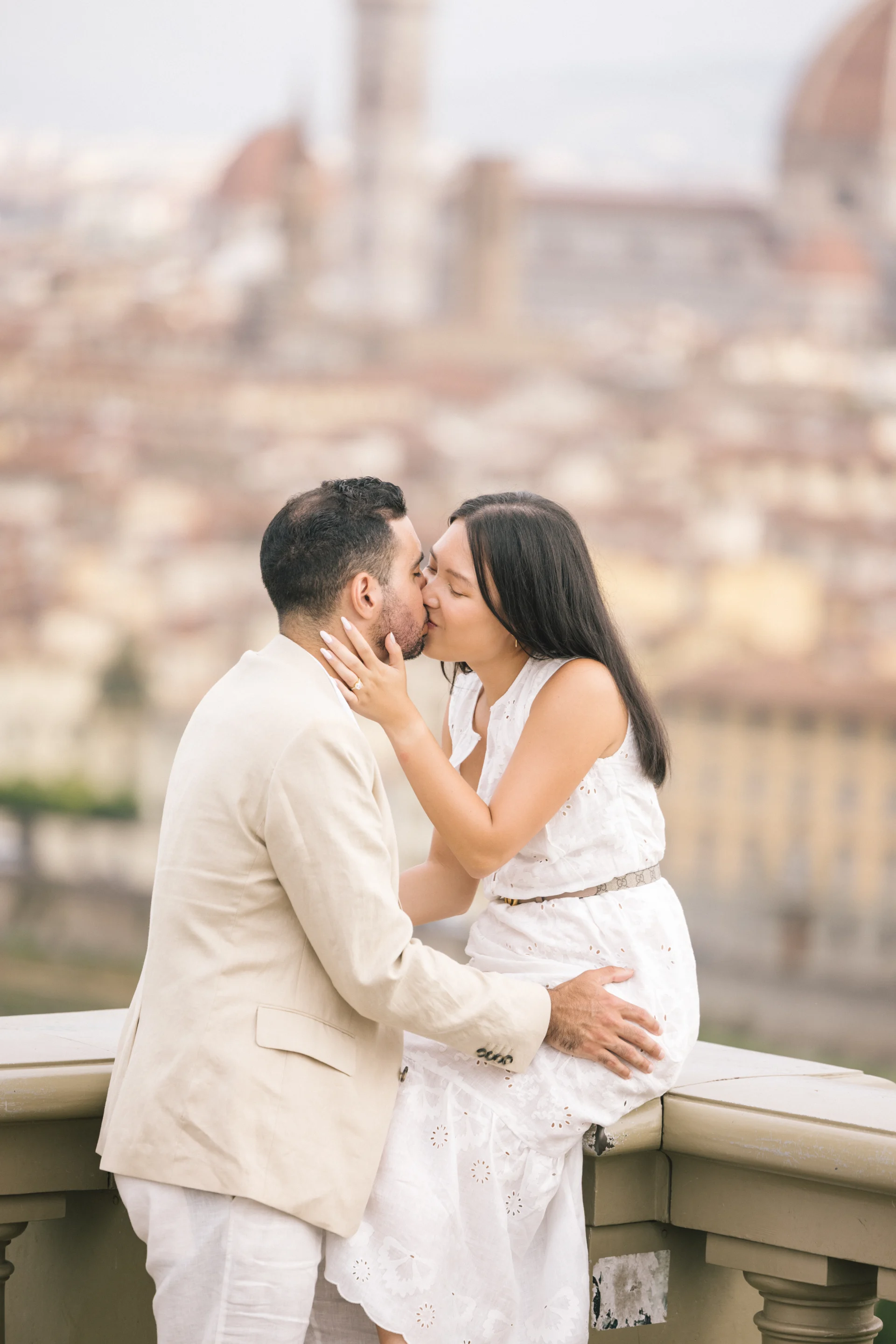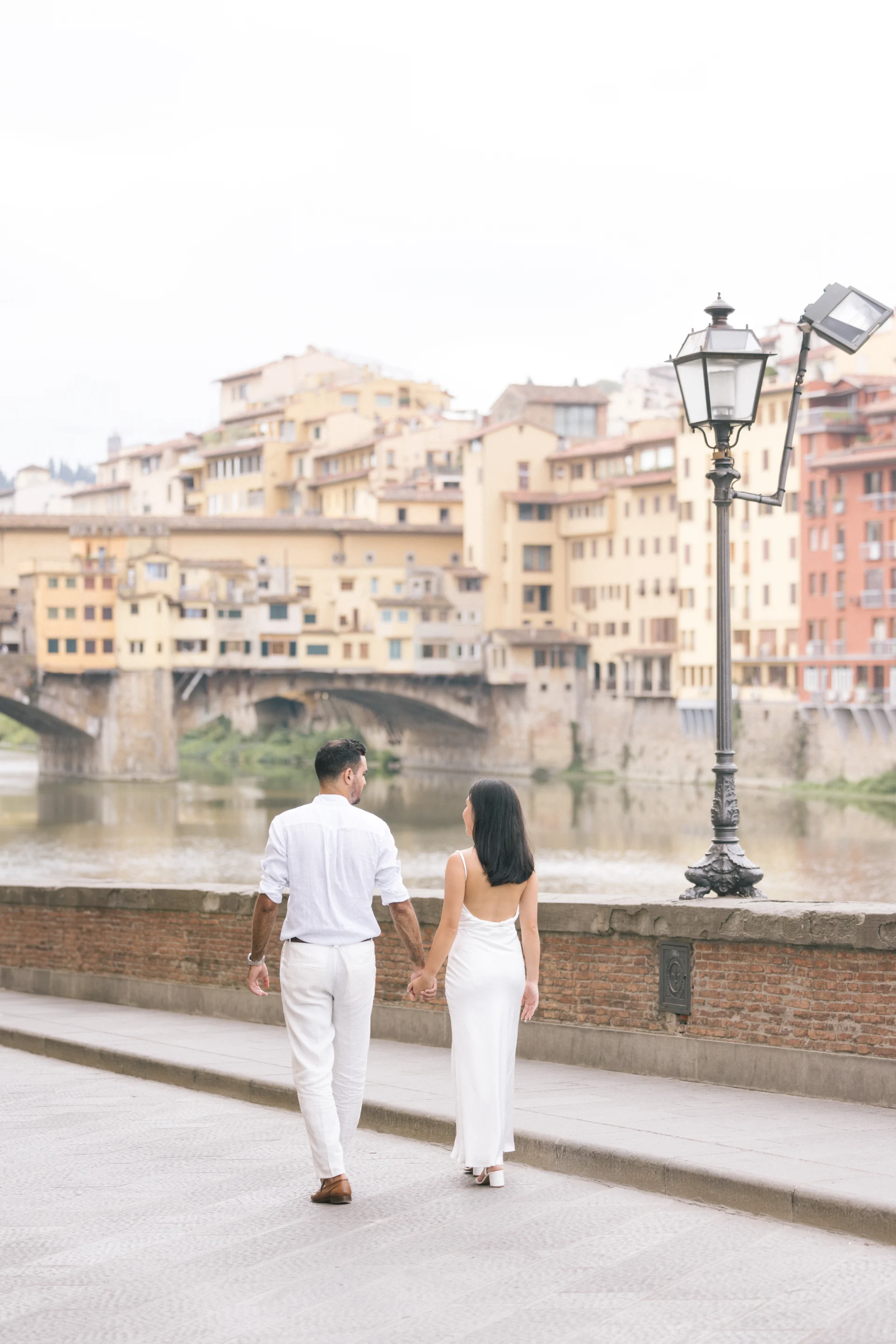 A few days later, we met in Florence, where they wandered through the historic city in effortless neutral tones, sharing quiet moments and laughter against the breathtaking backdrop of the Duomo. From romantic embraces at Piazzale Michelangelo to dreamy walks along Florence’s sun-drenched streets, this session was a perfect reflection of their love and the magic of Italy. If you’re planning a destination wedding or engagement in Italy, let this be your inspiration!